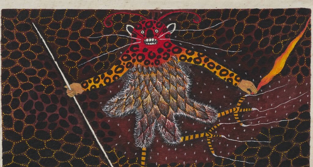 Paralelamente, o Masp apresenta “Santiago Yahuarcani: o Princípio do Conhecimento”, primeira exposição individual do artista uitoto no Brasil, em cartaz de 2 de abril a 21 de junho. Distribuída em cinco núcleos, a seleção de 35 peças aborda temas como criação, trauma e resistência. Obras como “Lugar quente” — que exibe figuras humanas invertidas, perseguições e fogueiras — dialogam com narrativas de violência impostas a comunidades amazônicas situadas entre o sul da Colômbia e o norte do Peru.