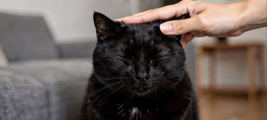 1. Dificuldade de leitura facial: a pelagem escura torna expressões sutis menos visíveis, levando o gato a recorrer a contatos físicos e vocais para se fazer entender.