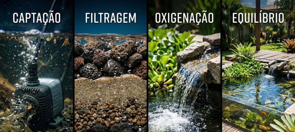- Mini lago filtrante: como a circulação contínua mantém a água saudável