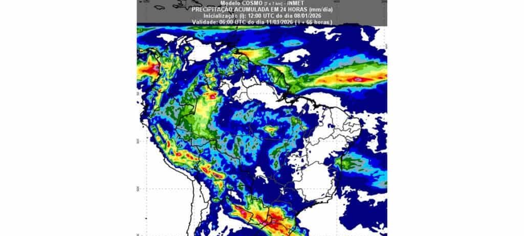 Na manhã de domingo, 11 de janeiro, está prevista a passagem do centro do sistema sobre a região de Santa Vitória do Palmar. Esse momento concentra a expectativa de rajadas mais fortes mesmo em áreas sem chuva intensa, por causa do gradiente de pressão que se mantém elevado nas proximidades do centro ciclônico.