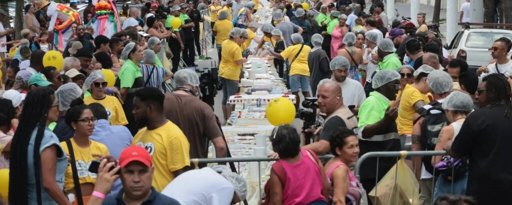 Um dos rituais mais antigos da data, o Bolo do Bixiga, completa quatro décadas ocupando a Rua Rui Barbosa, no bairro italiano localizado na região central. A comunidade organiza, a partir das 12h, a “maior mesa de bolo de aniversário do mundo”, seguida pelo tradicional canto de parabéns dedicado à cidade. Outra distribuição de fatias está programada para o Mercado Municipal. Nesse caso, a participação depende da retirada de senha a partir das 10h30. Ambos os eventos mantêm viva a conexão entre a história gastronômica paulistana e o sentimento de pertencimento dos moradores.
