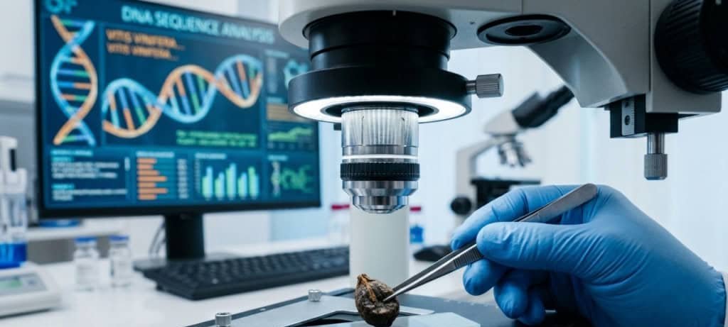Quando a equipe de arqueólogos retirou o sedimento, foi possível recuperar a amostra íntegra. Em laboratório, os pesquisadores descreveram um processo minucioso de descontaminação para eliminar qualquer vestígio de micro-organismos modernos. Só então o núcleo genômico da semente foi sequenciado e comparado com o banco de dados global de videiras.