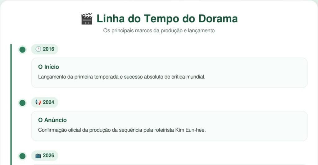 A tvN escolheu o fim de 2026 para lançar a nova fase do dorama, encaixando a produção em um momento simbólico: duas décadas de operação do canal. O posicionamento da temporada como peça-chave da programação comemorativa confere peso histórico ao projeto e indica prioridade máxima no cronograma da emissora. Para o público, esse intervalo de dez anos entre as duas fases reforça o caráter raramente visto em séries coreanas, que costumam retornar em períodos muito menores quando bem-sucedidas. O hiato, contudo, não diminuiu o interesse; pelo contrário, alimentou teorias e discussões que mantiveram o título vivo na memória dos fãs.